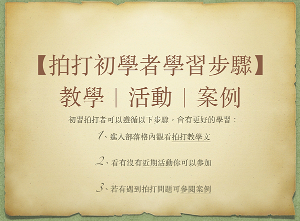 在這裡會有一系列的教學及案例,讓大家可以循序漸進地去認識拍打。